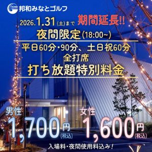 12/22(月)~28(日)、1/5(月)~12(月・祝)!18時~夜間打ち放題特別料金!