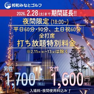2/28(土)まで期間延長!18時〜夜間打ち放題特別料金!