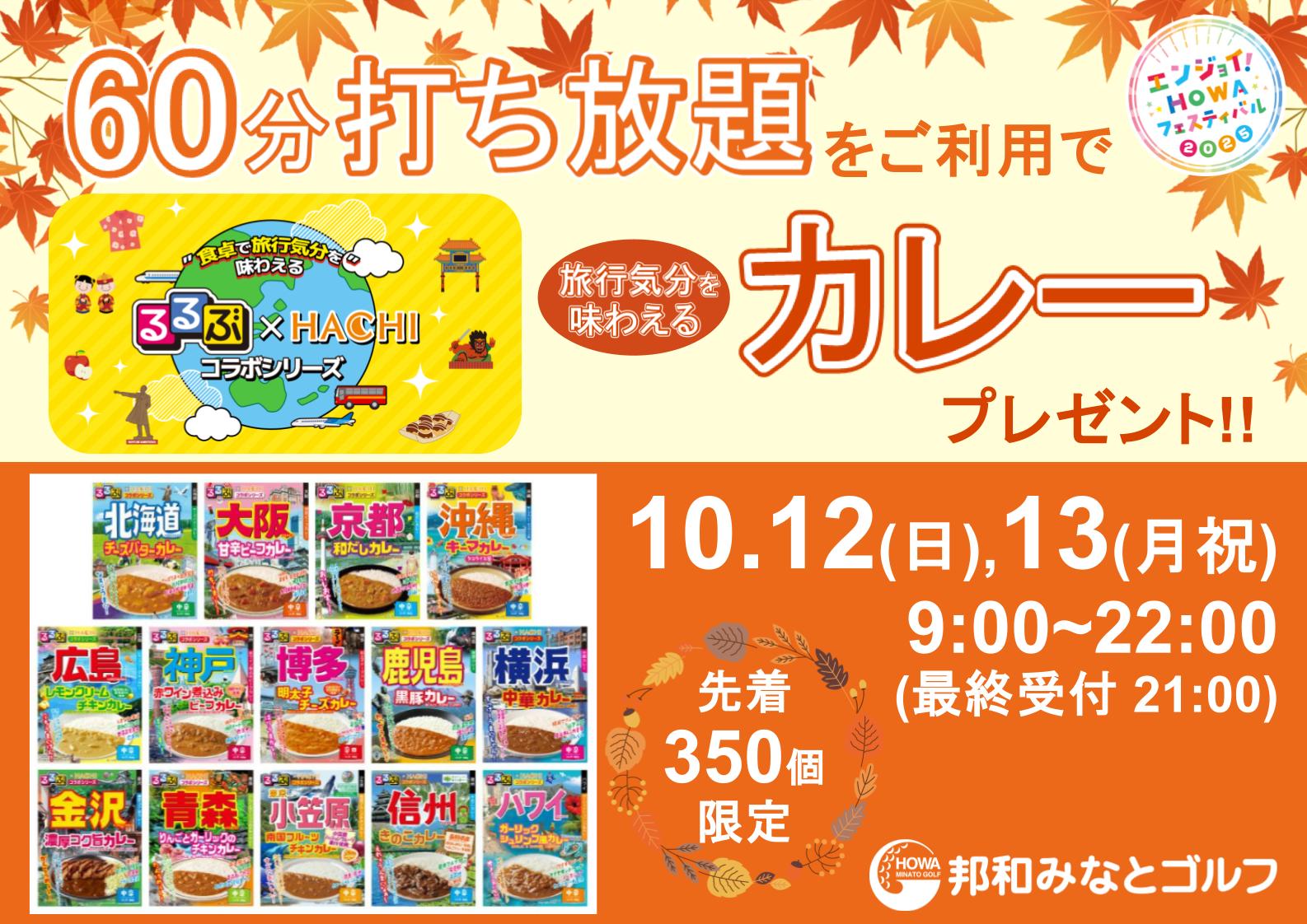 10/12(日)、13(月・祝)!HOWAフェス「スポーツの秋!60分打ち放題で旅行気分を味わえるカレーGET!」開催♪